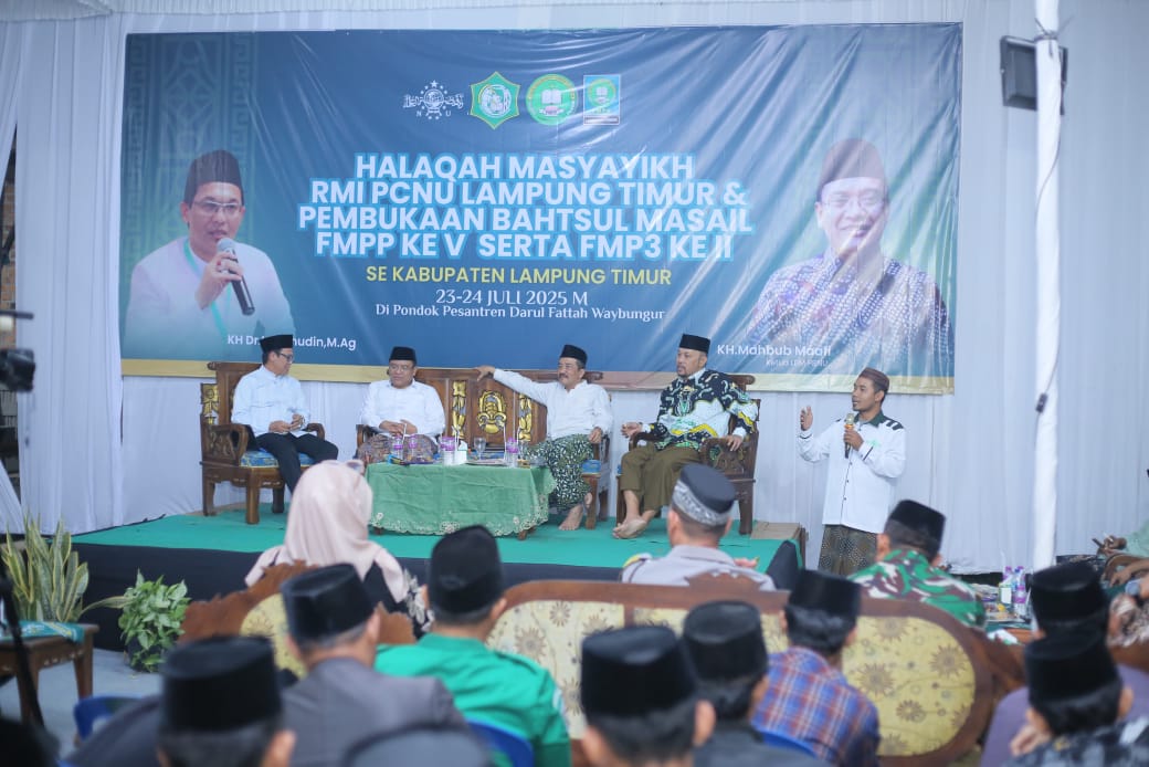 Dengan suasana penuh kekeluargaan, para pengasuh pondok pesantren se-Lampung Timur dan santri peserta tampak antusias mengikuti diskusi. Sesekali, forum diwarnai gaya khas bahsul masail yang dinamis, mencerminkan tradisi intelektual pesantren yang tetap hidup.